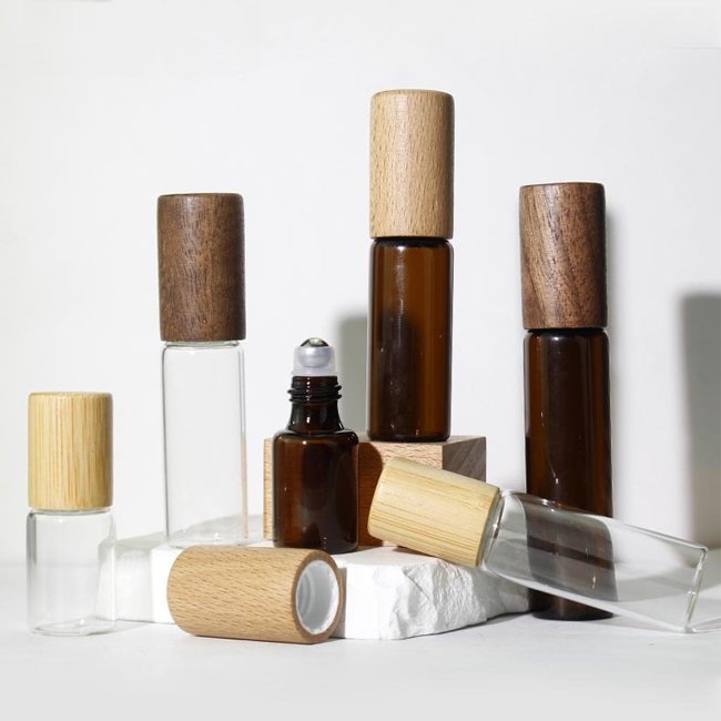 glass roll on bottle with wood cap